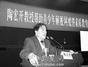 一襲并不時尚的米色風衣,一套普通的深色西裝,中等身材,高額闊臉,面色健康,頭發(fā)略有花白?烊丝煺Z,不時夾雜幾句“Yes”“No”,講到激動處有些口吃。這便是“青少年網(wǎng)絡愛心大使”、59歲的華中師范大學特聘教授陶宏開。從間接了解,到直接接觸,從報告會、座談會,到面對面采訪,連日來,記者就這樣走近陶宏開——