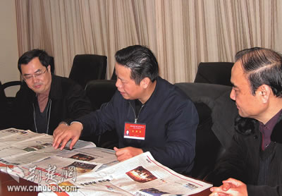 “今年的‘兩會’報道有新意,有創(chuàng)意,圖文并茂,紙網(wǎng)互動,為今年的宣傳工作贏得了‘開門紅’,打響了‘第一炮’!弊蛉障挛纾∥N、宣傳部部長張昌爾到洪山賓館看望了“兩會”宣傳報道人員,對本報的“兩會”報道充分肯定。