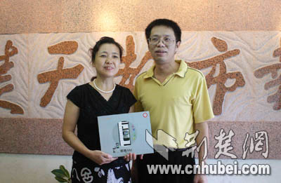 張女士在丈夫陪同下到楚天都市報(bào)領(lǐng)取獎(jiǎng)品