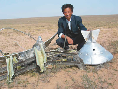 火箭的逃逸塔、助推器、芯一級和整流罩先后墜落在從內(nèi)蒙古巴丹吉林沙漠到陜西榆林地區(qū)的4個(gè)落點(diǎn),全線距離近800公里!八阉餍》株(duì)的一個(gè)重要任務(wù)是尋找火箭的磁記錄儀!标懮蠎(yīng)急救生大隊(duì)大隊(duì)長朱亞斌說。磁記錄儀就是人們通常說的“黑匣子”,是記錄火箭飛行數(shù)據(jù)的重要儀器,有助于了解遙測系統(tǒng)無法得到的一些數(shù)據(jù)。