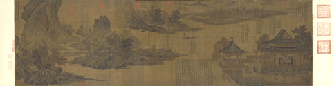 《十詠圖》卷,宋,張先繪,絹本,淡設(shè)色,畫(huà)心縱52cm,橫125.4cm。