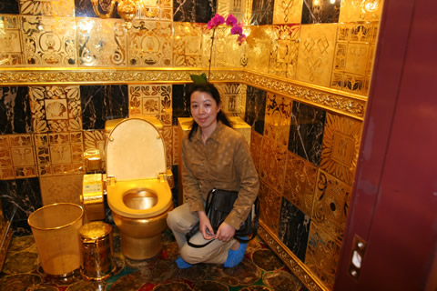 在2002年版的《吉尼斯世界紀(jì)錄》上有著這樣一條記錄:“用錢沖洗――世界上最昂貴的衛(wèi)生間由珠寶商林世榮制造,在他的中國香港商店售價240萬英鎊。它完全由金子和昂貴的珠寶制成。抽水馬桶、洗臉臺、刷子、衛(wèi)生紙盒、鏡框、墻上架設(shè)的吊燈、墻上的瓷磚和門全部都由24K黃金構(gòu)成! “這里有一點(diǎn)寫得不對,我的金廁所決不出售,我還要用它來專門注冊一個品牌,成為我們企業(yè)的象征。”林世榮在接受記者采訪時,詳細(xì)地解釋了自己對“金廁所”的感情。 現(xiàn)任香港恒豐金業(yè)科技集團(tuán)主席的林世榮說:“整個金廁所都是由我親自設(shè)計、監(jiān)督制造的,我甚至在工地呆過整整三天三夜沒有出來,可以說是傾注了極大的心血。很多人可能不了解我為什么會用這么多黃金來建造一個廁所,其實(shí)我不是為了炫耀,也不是喜歡奢侈浪費(fèi),我是在完成一個心愿。把土變成金了不起,把金變成土同樣了不起!