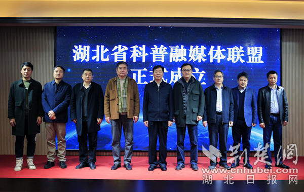 與會領(lǐng)導(dǎo)嘉賓為“湖北省科普融媒體聯(lián)盟”揭牌。