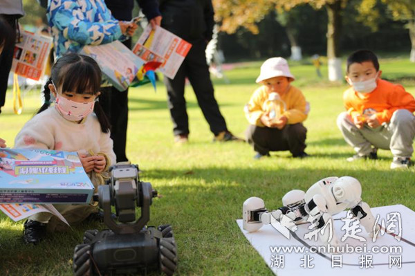 “機(jī)器人是在做瑜伽嗎?它們還會跳雙人舞!”隨音樂舞蹈的機(jī)器人令小朋友們頗感新奇。華中農(nóng)業(yè)大學(xué)博物館與中國地質(zhì)大學(xué)逸夫博物館展出的動物標(biāo)本、恐龍化石與礦石則吸引了眾多游人的注意力。人們駐足在展位前,領(lǐng)略科學(xué)的美麗。