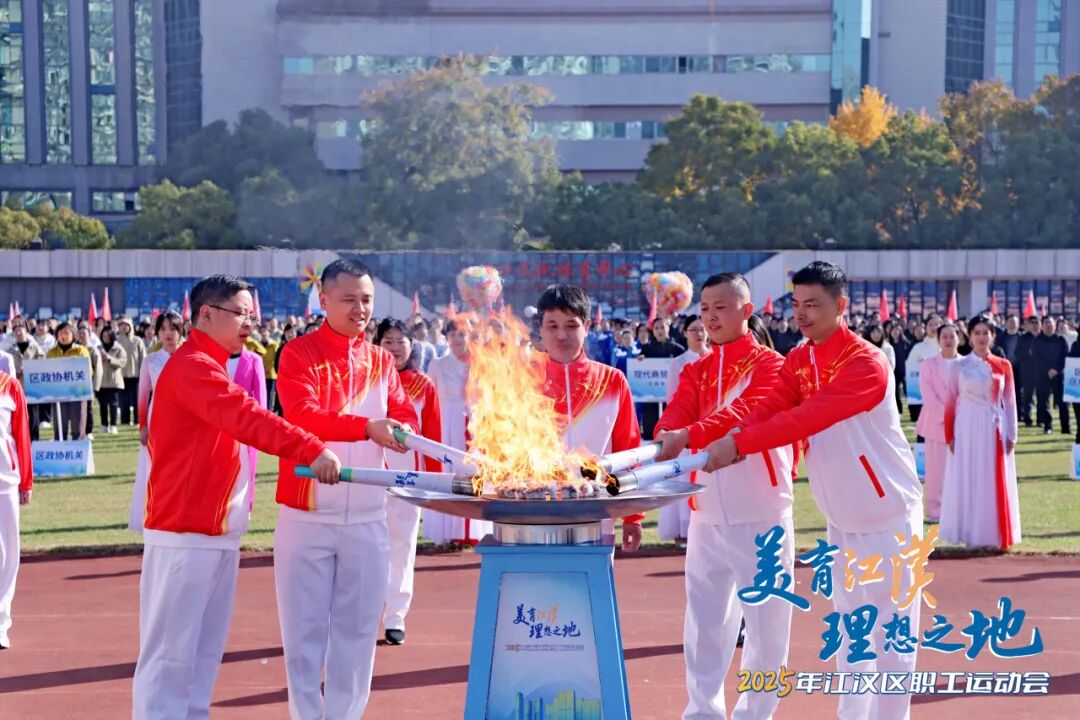 現(xiàn)場(chǎng),“新興之火”“數(shù)智之火”“金融之火”“樞紐之火”“人文之火”五棒火炬依次點(diǎn)亮,張?jiān)!⒏犊?、邵青、張寶劍、孟廣松等15位勞模代表接力傳遞。燃燒的火焰,照耀著江漢區(qū)在科技創(chuàng)新、數(shù)字化轉(zhuǎn)型、金融強(qiáng)區(qū)、商貿(mào)物流、文商體旅融合等發(fā)展領(lǐng)域堅(jiān)定向前。當(dāng)所有火炬手共同點(diǎn)燃主圣火盆,彩球騰空,全場(chǎng)沸騰,運(yùn)動(dòng)會(huì)正式開(kāi)幕。