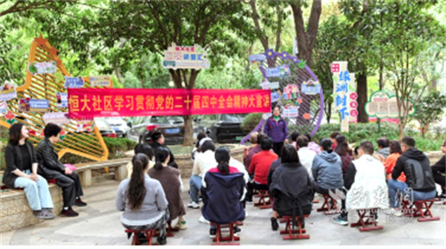 社區(qū)黨委堅持把理論武裝擺在首位,著力構建立體化宣講矩陣。創(chuàng)新打造“綠洲樹下”“小亭議事”“周三有約”等特色微陣地,充分發(fā)揮“社區(qū)合伙人”中老黨員、退伍老兵、先進模范等榜樣力量的核心作用,組建“紅色宣講團”。宣講團成員化身“草根講師”,走出會議室,深入綠蔭下、小亭中,以百姓視角、武漢方言、拉家常方式,生動解讀二十屆四中全會精神等理論及最新政策,使黨的聲音更鮮活、更可感。在“潤物有聲”的微課堂里,居民圍坐探討、邊聽邊議、有問有答,實現(xiàn)了理論學習“零距離”、思想傳播“接地氣”。同步開展“治理金點子”征集活動,引導居民將學習成果轉化為參與社區(qū)治理的實際行動,圍繞公共事務、環(huán)境整治、鄰里互助等議題積極建言獻策,累計收集有效建議100余條。