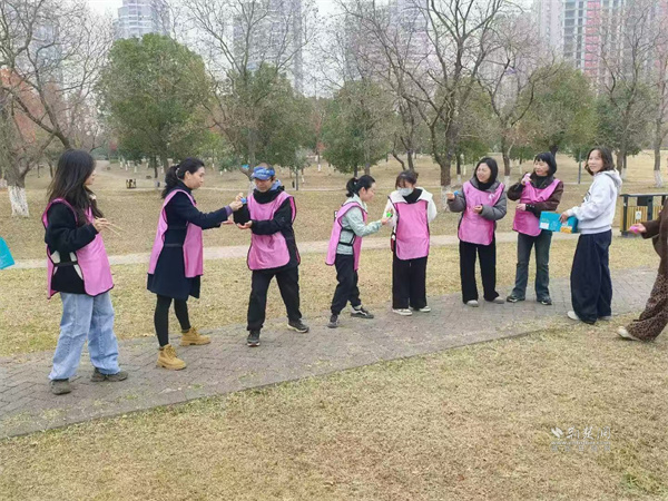 中午時分,大家齊聚武昌江灘?;顒右潦迹娙藝蓤A圈,在主持人引導(dǎo)下,伴著歡快的音樂進行破冰互動。隨后,眾人以抽簽的方式劃分為三組,三項趣味游戲輪番上演。