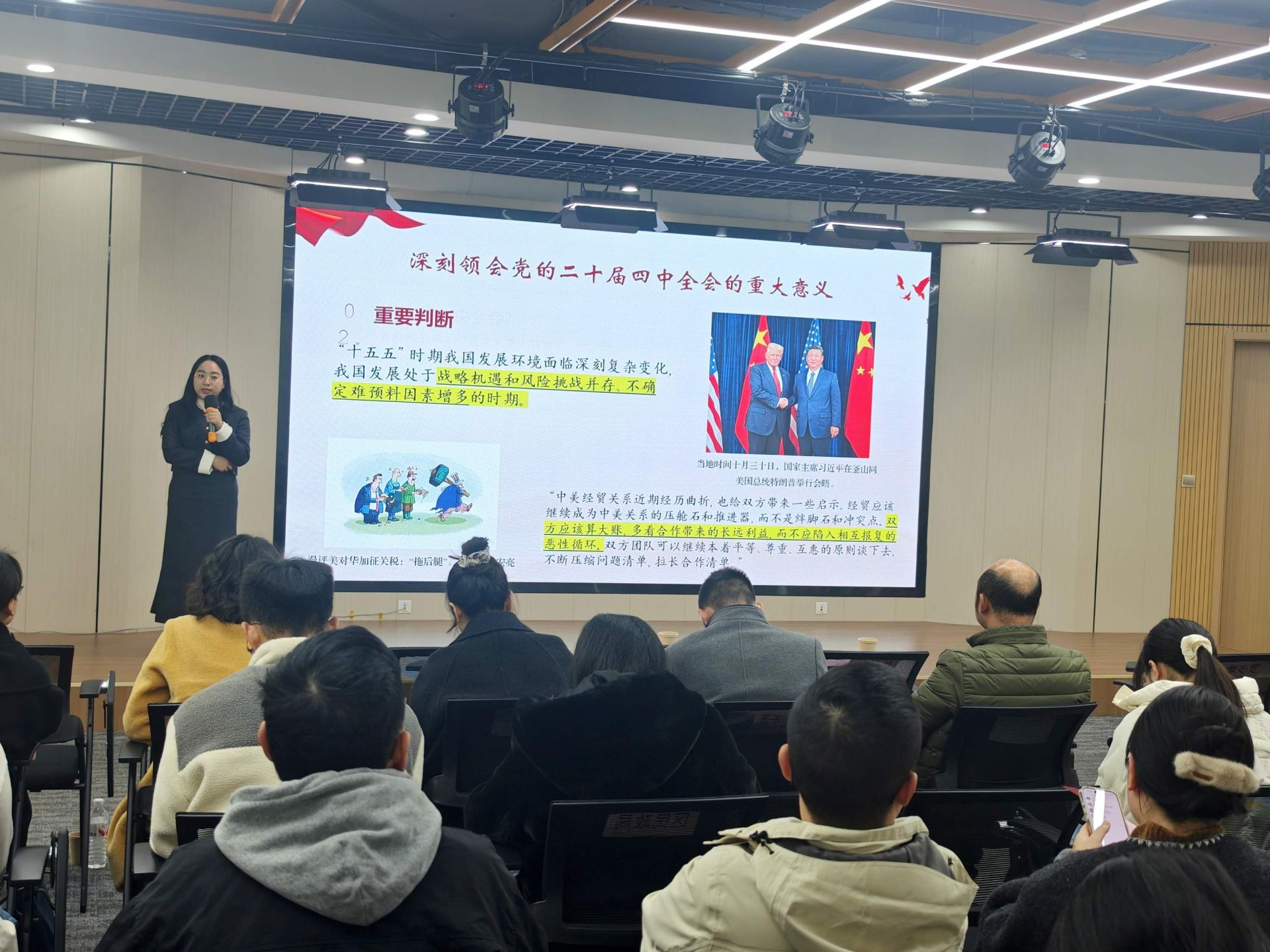 隨后,武漢市委黨校行政管理教研部教師、武漢市“青聲紅語”青年宣講隊(duì)成員吳靜怡,圍繞全會的重大意義與“十五五”時(shí)期的目標(biāo)任務(wù)作了專題輔導(dǎo)。她勉勵在場青年將個(gè)人理想融入國家發(fā)展大局,在科技創(chuàng)新、鄉(xiāng)村振興、基層治理等一線主戰(zhàn)場挺膺擔(dān)當(dāng),以實(shí)干實(shí)績?yōu)橹袊浆F(xiàn)代化貢獻(xiàn)青春力量。