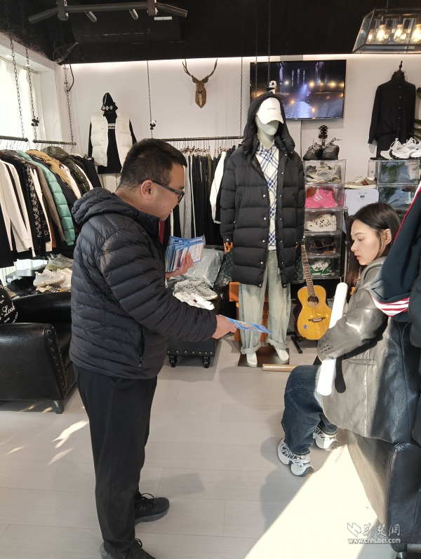 為商戶宣傳安全知識(shí)。 通訊員供圖