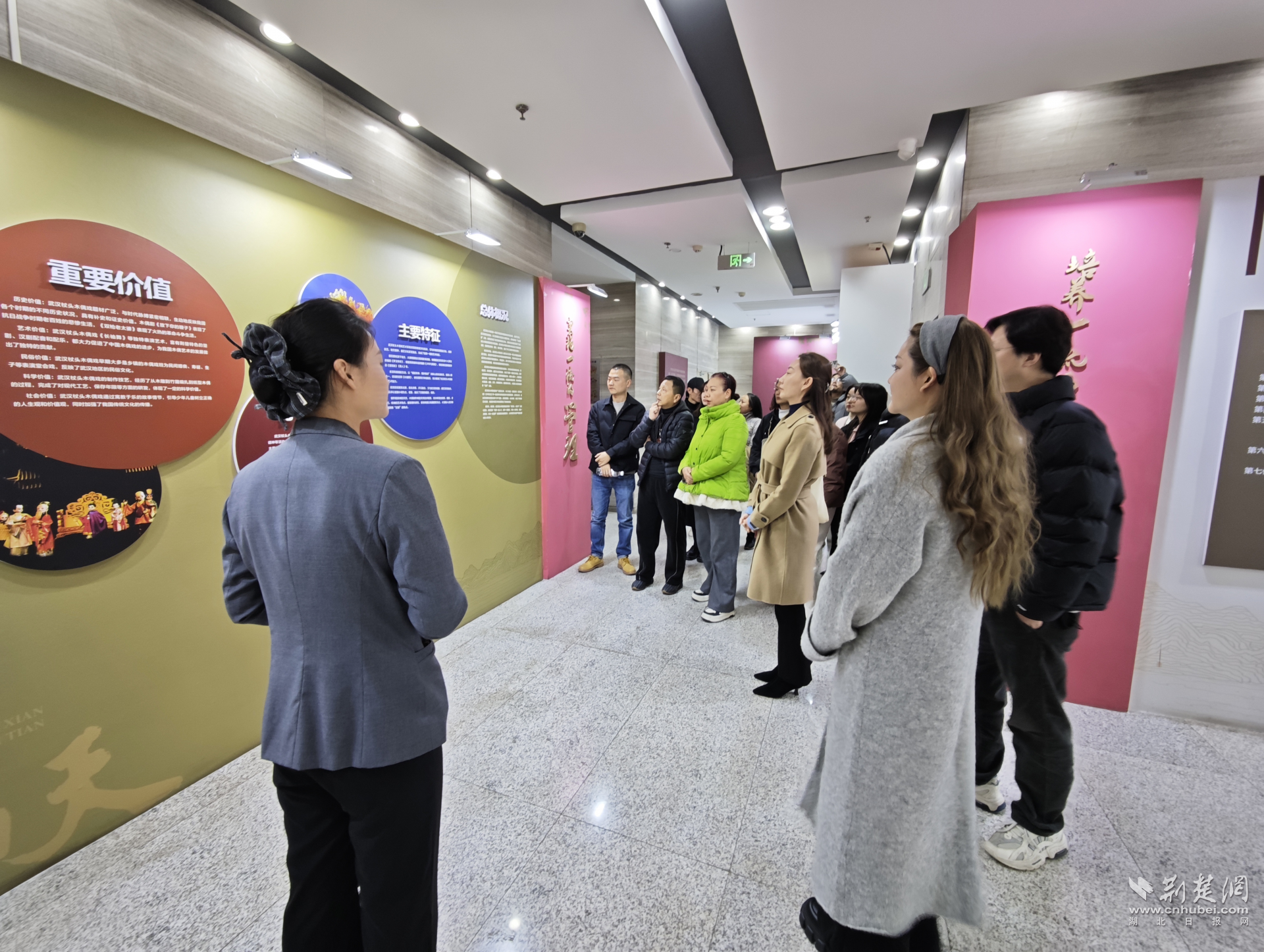隨后,一行人來到武漢杖頭木偶戲專題展。在非遺傳承保護人的講解下,大家近距離了解杖頭木偶的制作工藝、表演技巧及保護傳承成果。一刀一刻的匠心、一舉一動的神韻,讓成員們直觀感受到傳統(tǒng)藝術背后的時間厚度與文化力量。