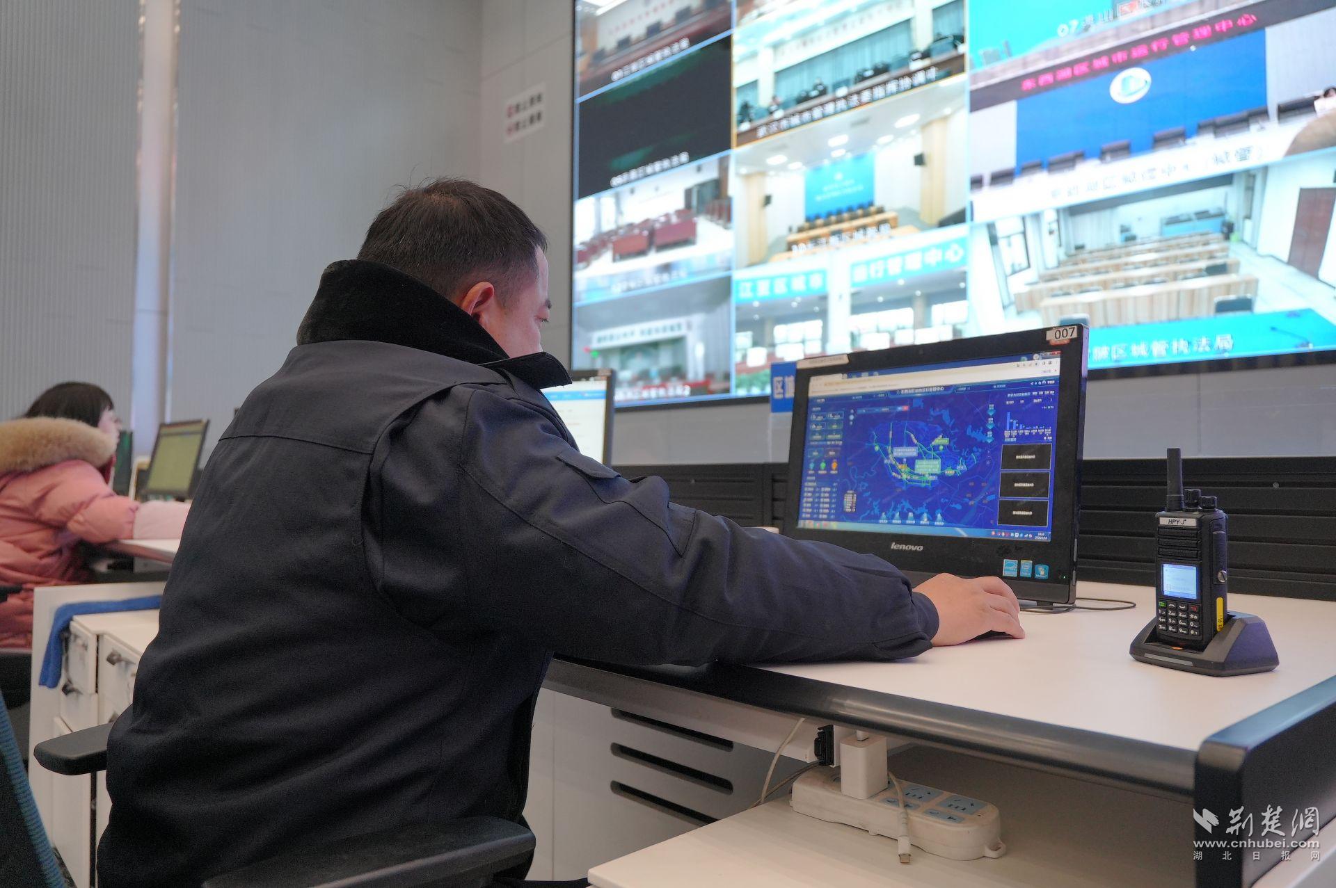 這是東西湖區(qū)本輪應(yīng)對低溫雨雪冰凍天氣的指揮中樞。調(diào)度大廳內(nèi),一套新升級的融雪防凍智慧應(yīng)用正在運行:天氣變化、人員物資、道路狀態(tài)在同一平臺集中呈現(xiàn),重點路段通過視頻輪巡實時監(jiān)控,必要時可啟用無人機輔助巡查,實現(xiàn)對主干道路、橋梁、學(xué)校和商圈周邊的動態(tài)掌控。
