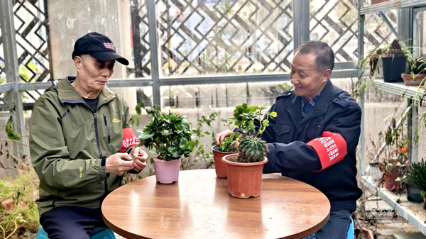 作為“春天鄰里服務(wù)隊(duì)”發(fā)起人之一和支部老黨員,周榮良是看著這些變化一點(diǎn)點(diǎn)發(fā)生的。最早動員大家時,他領(lǐng)著幾位老黨員,挨家挨戶敲門,話也說得實(shí)實(shí)在在:“咱們一起試試,先清出一小塊地也行?!庇腥丝?,有人問,可更多的鄰居還是打開了家門——退休的居民搬出了家里不用的花盆;做水電工的師傅答應(yīng)幫忙安裝澆水的水管;連剛上學(xué)的小孩子,也捧來了自己養(yǎng)的小多肉。