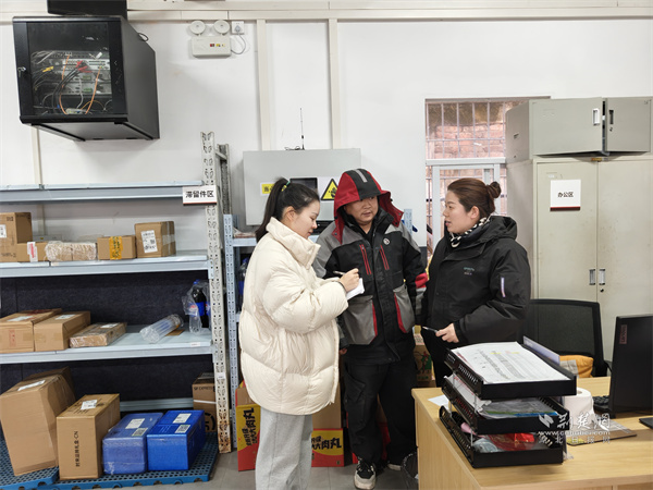 “平時配送辛苦,一定要吃好穿暖?!痹跂|湖村社區(qū)順豐快遞站點,街道工作人員的貼心問候驅(qū)散了冬日寒意。他們詳細了解大家的日常工作與生活情況,并送上實用物品,同時反復(fù)叮囑注意防寒保暖與出行安全??爝f員張師傅雙手接過沉甸甸的心意,臉上洋溢著笑容:“年關(guān)前后訂單量越來越大,經(jīng)常忙得顧不上吃飯,街道記得我們,心里特別暖,干活更有勁了。”“街道不僅送來了慰問品,平時還會主動了解我們的需求,幫我們解決實際困難,這份溫暖讓我們心里特別暖?!闭军c負責(zé)人楊站長表示,這份關(guān)懷讓站內(nèi)30余名同事都感受到了濃厚的“珈”園歸屬感。