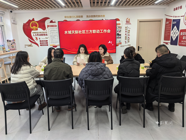 水域天際社區(qū)召開(kāi)三方聯(lián)動(dòng)工作會(huì)。 通訊員供圖