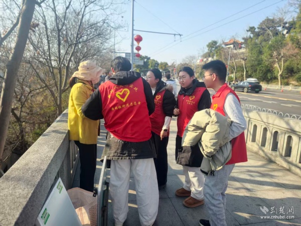 春節(jié)期間,黃鶴樓景區(qū)迎來客流高峰。西廠口社區(qū)“新春守護(hù)隊”的志愿者們每日駐守在彭劉楊路地鐵站各出入口、下橋閘道及黃鶴樓景區(qū)周邊,開展動態(tài)巡查與志愿服務(wù)。從路線指引到票務(wù)咨詢,從行李協(xié)助到應(yīng)急幫扶,志愿者們用熱情的微笑和專業(yè)服務(wù),為初來乍到的外地游客送上第一縷“武漢溫度”。