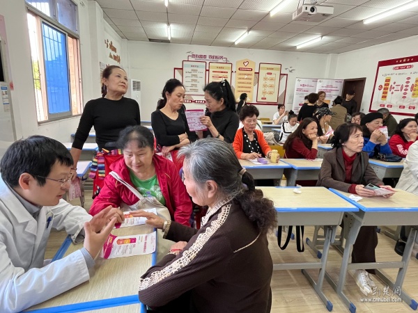 活動當(dāng)天,分校教室坐滿了老年學(xué)員與社區(qū)居民。在黨員志愿者和工作人員的引導(dǎo)下,大家有序完成骨密度檢測,聆聽健康科普講座,享受便捷、貼心的專家義診。