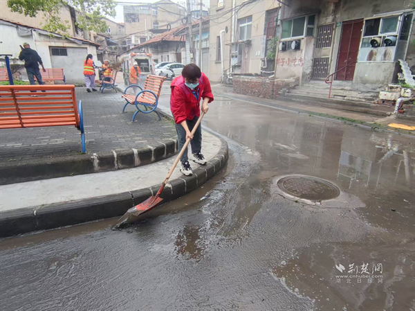 荊楚網(wǎng)(湖北日報網(wǎng))訊(通訊員 朱凡)受近期強(qiáng)降雨影響,武漢市武昌區(qū)白沙洲街道堤東社區(qū)部分路段出現(xiàn)下水道反涌、淤泥堆積等情況,對居民正常出行造成不便。為盡快恢復(fù)社區(qū)整潔環(huán)境,阻斷病菌蚊蟲滋生,4月10日,白沙洲街道迅速組織開展雨后環(huán)境衛(wèi)生集中清潔消殺行動,志愿者、社區(qū)工作者、環(huán)衛(wèi)工人、城管隊員等30余人參與整治。