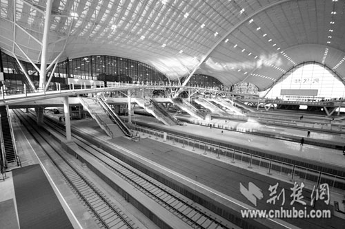 荊楚網(wǎng)消息 (楚天金報記者譚新杰 通訊員吳志華) 日前,武廣客專北端的起點站——武漢火車站已正式“掛牌”。自從2006年9月開工以來,這座飄逸的“鋼鐵巨鵬”,便淹沒在鏗鏘的建設(shè)聲中,一般人也很難進入站內(nèi)一看究竟,只能遠遠地看著它的雙翼逐漸成形,雄風(fēng)漸展。這種結(jié)構(gòu)用鋼量超過鳥巢的偉大建筑,也被蒙上了一層神秘的面紗。