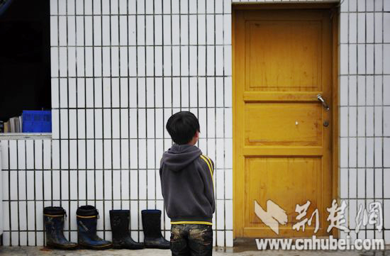 趙曉曉宿舍前,二年級學(xué)生楊銀松默默站著,房門緊閉。