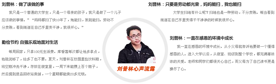 劉普林的可貴不僅在于為母分憂(yōu),而是一起掃街的身影讓人動(dòng)容,母慈子孝承載著無(wú)數(shù)中國(guó)人企盼家庭和樂(lè)的人生理想。