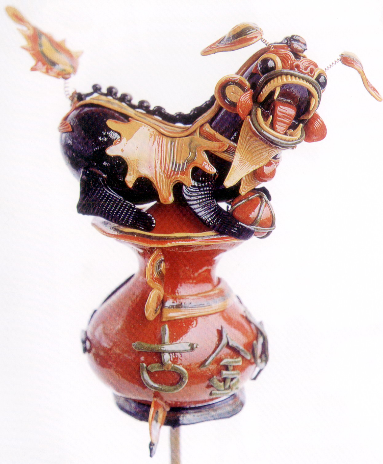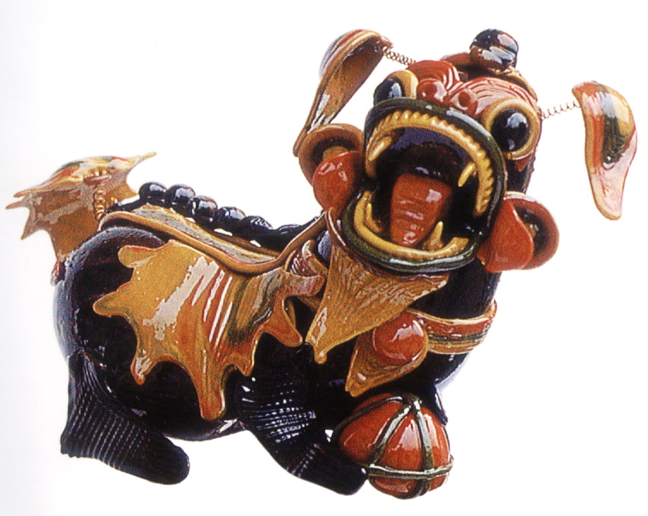 糖塑,俗稱吹糖,在湖北遍及全省,尤以天門最為突出。糖塑之所以贏得人們的喜愛,是因為它獨具特色:1、原料可塑性強:麥芽糖是糖塑的主要原料,加熱后變軟,比面塑更具可塑性,既可吹成薄而亮的各類造型,又可拉成粗細不同的糖絲。捏成不同形狀的配件,易粘且牢固;2、造型神形兼?zhèn)洌禾撬艿募妓囍饕Ψ蛟凇按怠鄙希粔K糖坯在藝人手中,邊吹邊捏,再通過搓、壓、挑、剪等手段,加上輔助的小鐵絲,少則幾分鐘,多則半小時,一件作品就完成了;3、色彩和諧醒目:麥芽糖加溫變軟加入紅、綠、黃、黑四種色素,根據需要又可調和成數十種復色,色彩響亮和諧;4、肌理變化豐富是糖塑獨具的特點:在糖塑中,附件變化萬千的肌理又與主體吹成光滑的表面形成鮮明的對比,顯得更加豐富耐看;5、“活”的部件是糖塑的又一特點:有的部件裝上自制的鋼絲彈簧,一經拿在手中,部件都“活”起來了,更具生氣。